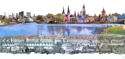 -a city’s life in one detailed portrait which captures its essence: A walk along its impressive buildings, its prominent places.
