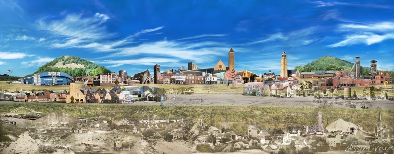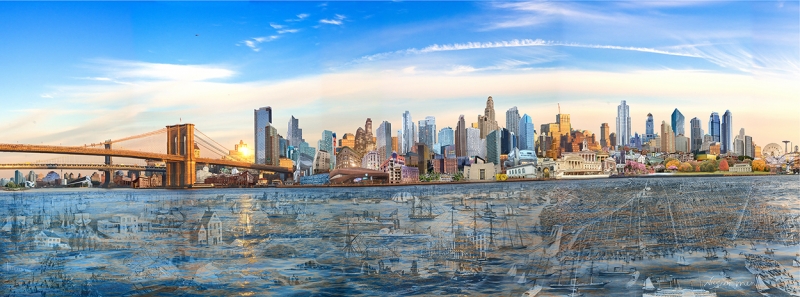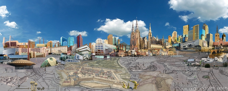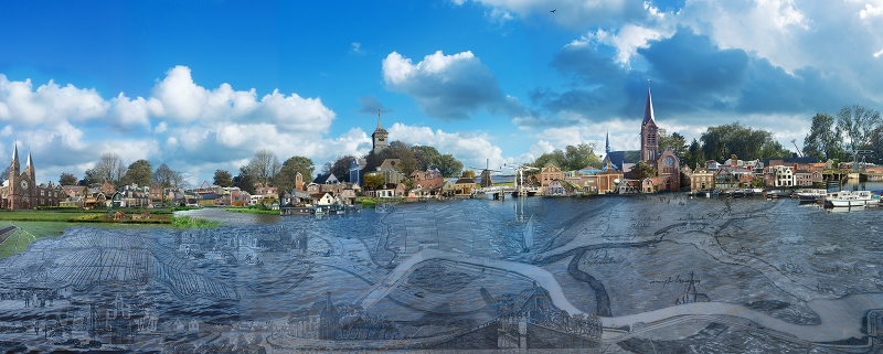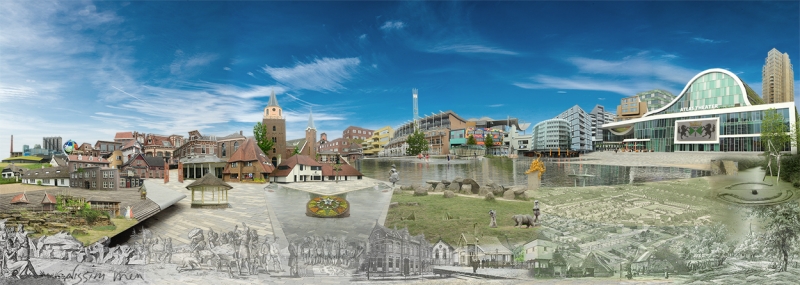 The outer rim depicts the structures and buildings that intersect and make up the present day landscape.